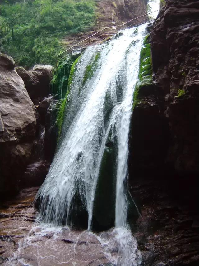 一大一小兩股瀑布自山間而下,匯聚成一股,水流清澈、水質(zhì)極佳。傳說用這里的水洗臉勻面,能求得一段好姻緣,所以頗受單身人士的喜愛。來關(guān)山還可和你愛的人在天柱峰扣上一枚同心鎖,許下愛的誓言。