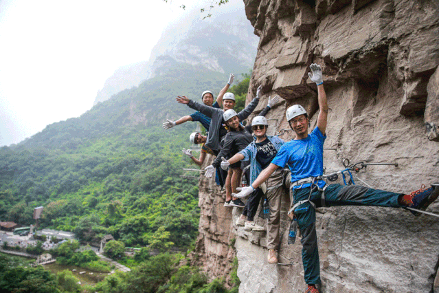 云臺(tái)山攀巖,由鐵扶手橫梯、固定纜索、巖石塞、踏腳墊等構(gòu)成的爬山徑道,讓爬山者不會(huì)攀巖也能攀上陡峭巖壁的一種戶外登山極限運(yùn)動(dòng)。參與者借助一定的裝備和設(shè)施,在懸崖上攀爬穿行,體驗(yàn)無限風(fēng)光在險(xiǎn)峰和天人合一的境界,也稱之為“巖壁上的舞蹈”、“崖壁上的旅行”。