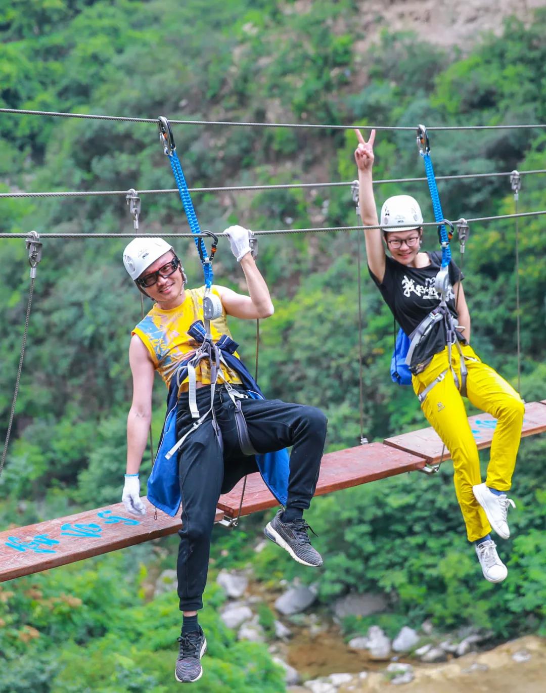 愛情總需要一點(diǎn)添加劑,不如來一點(diǎn)刺激為它增色!高空攀巖、飛云鐵梯、孤膽?yīng)毮緲颉⒃贫死葮、驚險(xiǎn)三纜橋、步步驚心吊橋,六大考驗(yàn)項(xiàng)目,步步驚心。懸立在高空中,張開雙臂,擁抱大自然,為愛攀登!