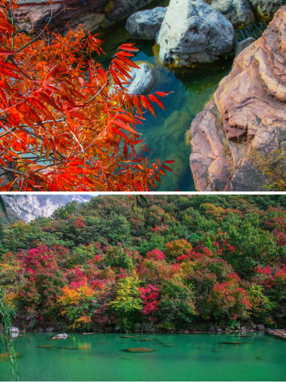 秋水共長天一色,望著群山環(huán)繞中的秋水天長,片片紅色點(diǎn)綴著遲遲不肯褪去的綠,伴著屢屢清風(fēng),遇見秋天的云臺(tái)山。