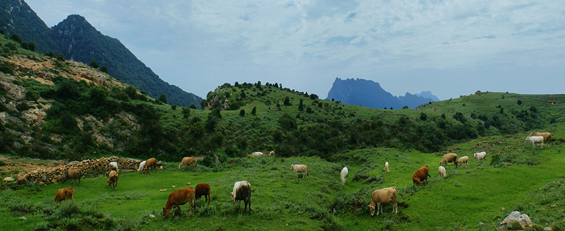 嵩頂高山草甸是中原地區(qū)最大的原生態(tài)高山草場,位于海拔1260m以上的高山之巔,穿云入霧、如夢如幻,面積2000畝以上。草甸內(nèi)草木以草灌類為主,數(shù)不清的野花點綴其中,放眼望去,一望無際,如高山草海一般。