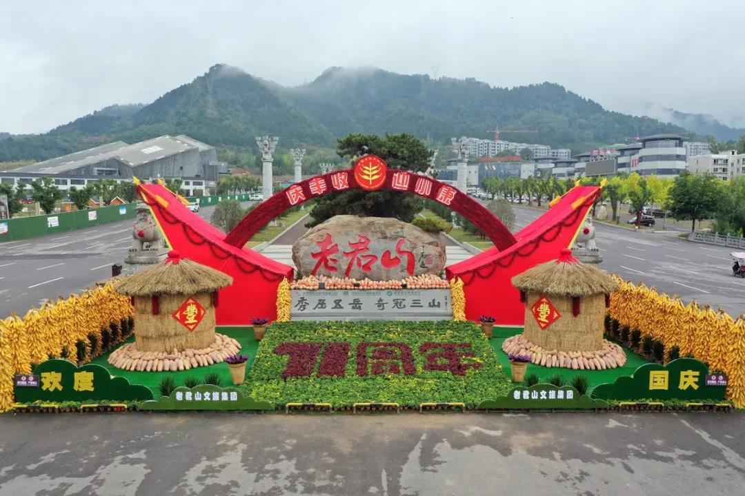 在老君山地質(zhì)廣場處,一個巨型的帆船造型,寓意來年一帆風(fēng)順;4米余高的糧倉、玉米墻及各類農(nóng)作物打造出一派豐收的景象,祈求五谷豐登,國泰民安。