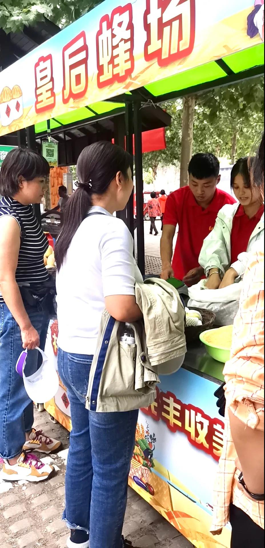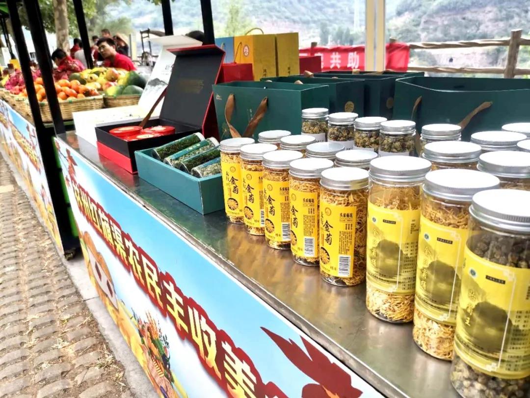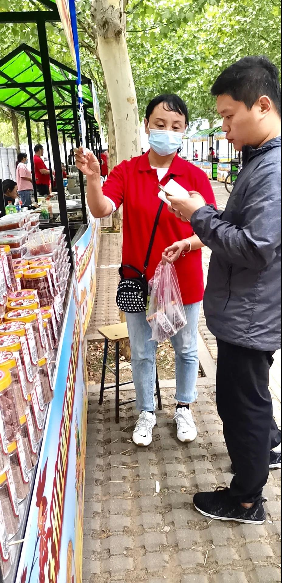 在農(nóng)產(chǎn)品展銷區(qū)內(nèi),擺滿了來自本地鄉(xiāng)鎮(zhèn)產(chǎn)出的優(yōu)質(zhì)糧食、紅薯、核桃、茶葉等近百種特色農(nóng)產(chǎn)品,看上去美味又養(yǎng)眼,現(xiàn)場咨詢購買的游客絡(luò)繹不絕。五谷豐登、大豐收的創(chuàng)意農(nóng)產(chǎn)品展示,游客紛紛打卡留念。