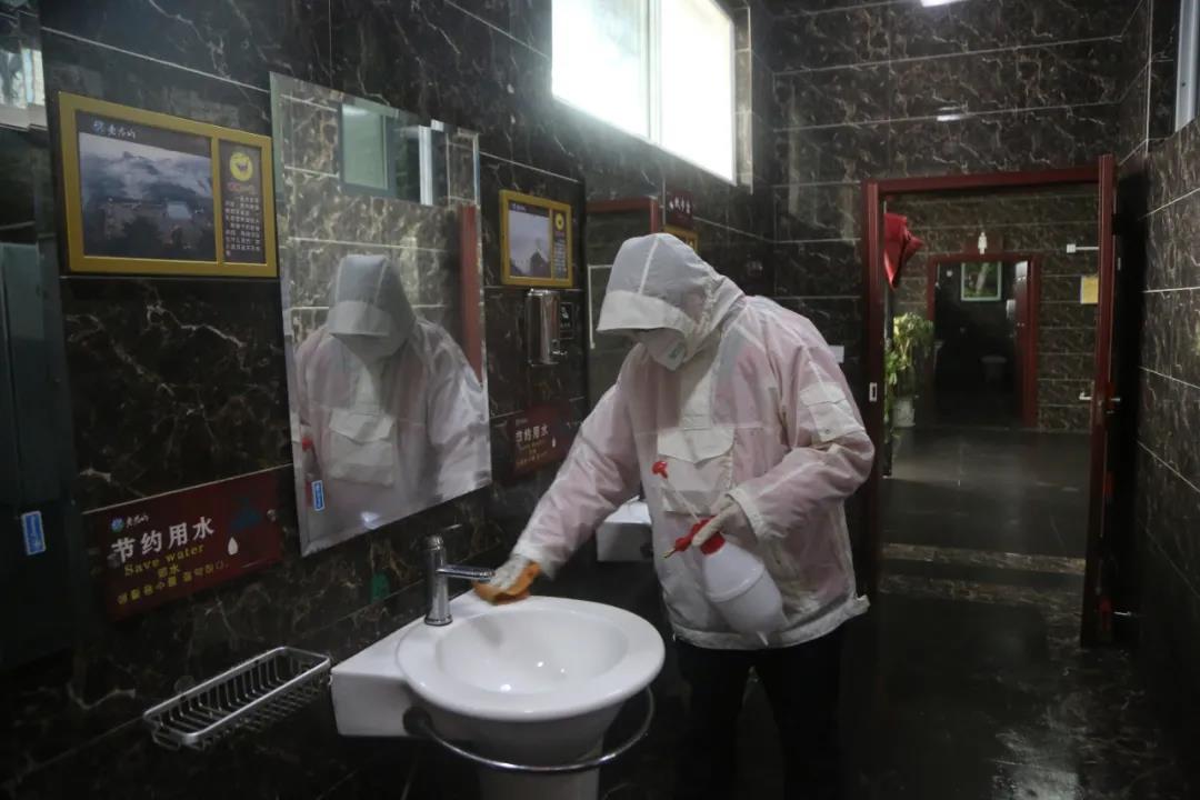 五、對(duì)景區(qū)密閉建筑、公共場(chǎng)所、衛(wèi)生設(shè)施、游樂(lè)設(shè)備、餐飲場(chǎng)所等進(jìn)行通風(fēng)換氣、清潔消毒。