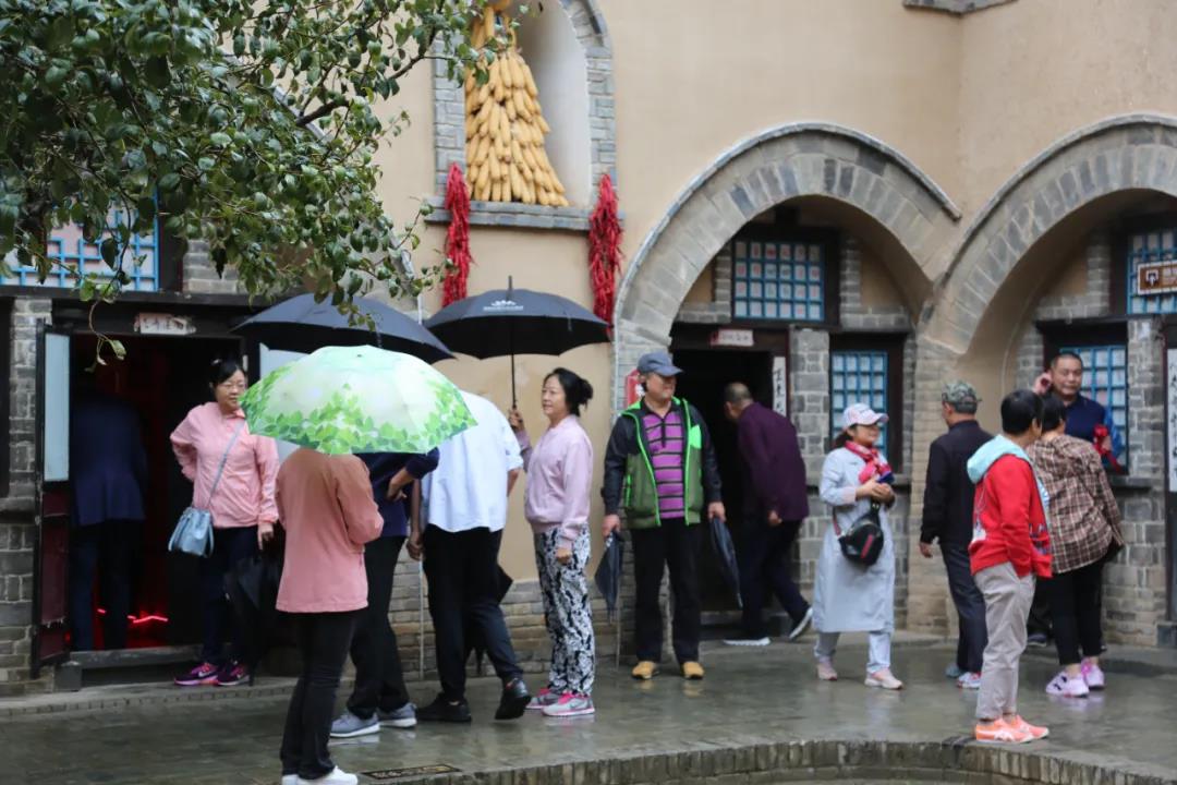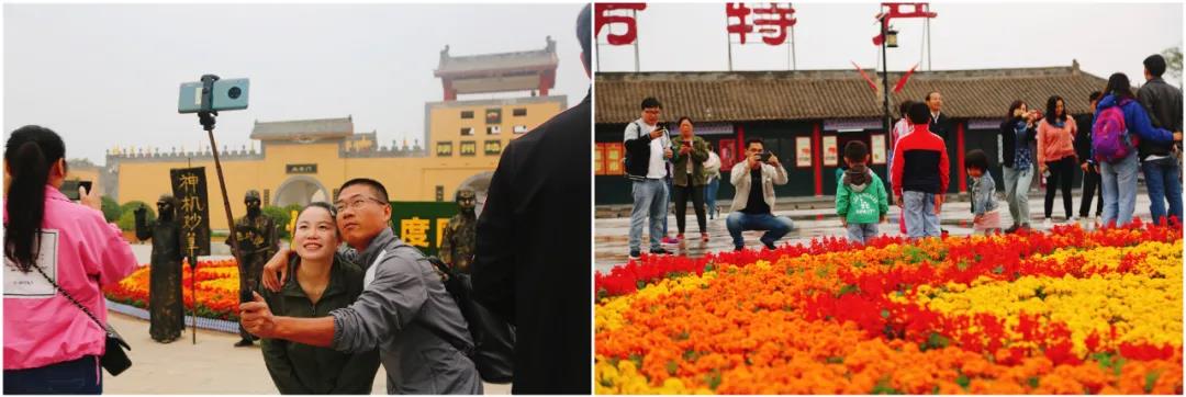 早上8點,不少游客與親朋好友已經(jīng)陸續(xù)抵達景區(qū)門口。在廣場的喜迎國慶鮮花造型前和地坑院景區(qū)大門同框,拍下一幅幅美麗的照片,打卡留念。