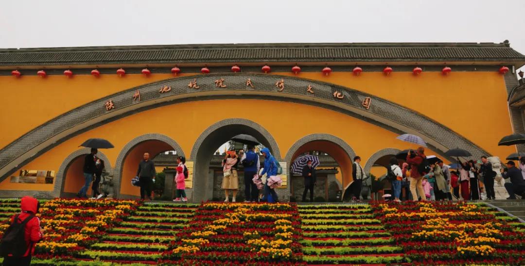 徜徉花路,“祖國萬歲”映在眼前,民俗文化園到了。這兒是一個有魔法的地方,所有游客都會駐足留念,也是研學(xué)團的小舞臺和節(jié)假日游客團體的合照地。綻放的鮮花和你臉上綻放的微笑,都很美。