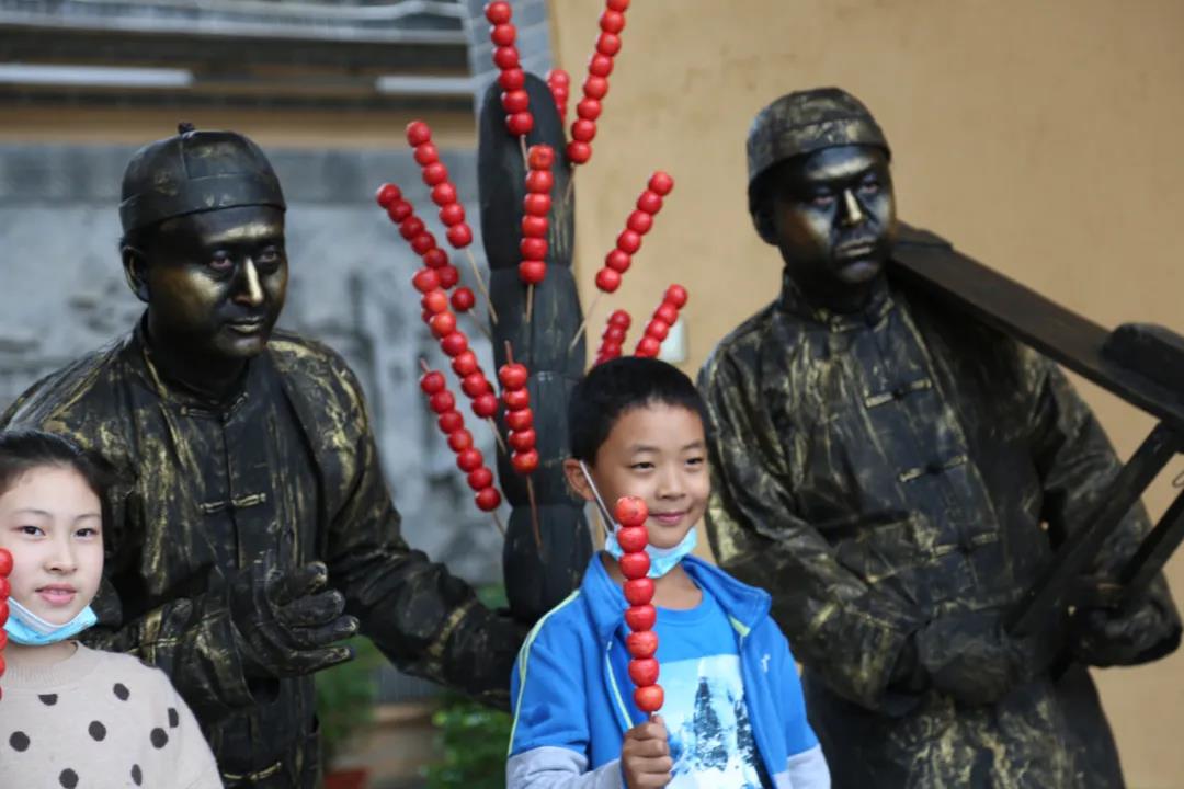銅人演繹陜州記憶。糖葫蘆、賣貨郎總能讓游客朋友忍不住買上一串,想起童年向父母撒嬌的自己。銅人演出時一動不動,竟比雕塑更為逼真,有時又利用人可以活動的特點,在一段時間變換不同造型,給您一種驚奇的感受。
