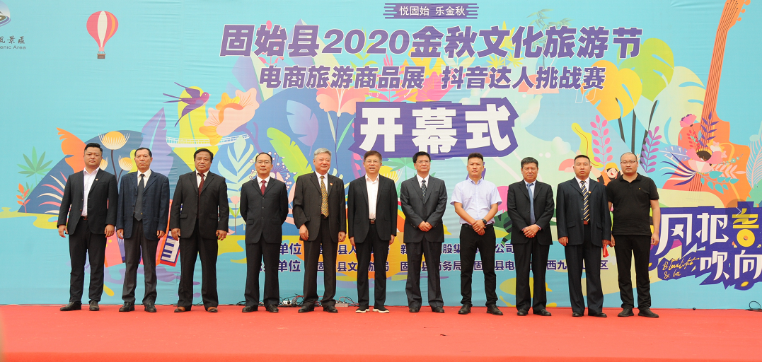 10月2日上午,固始縣2020金秋文化旅游節(jié)暨固始縣電商旅游商品展和抖音達(dá)人挑戰(zhàn)賽在西九華山開(kāi)幕。固始縣人大常委會(huì)副主任竹學(xué)軍、縣文廣旅局局長(zhǎng)?子、西九華山景區(qū)總經(jīng)理劉力等出席開(kāi)幕式。