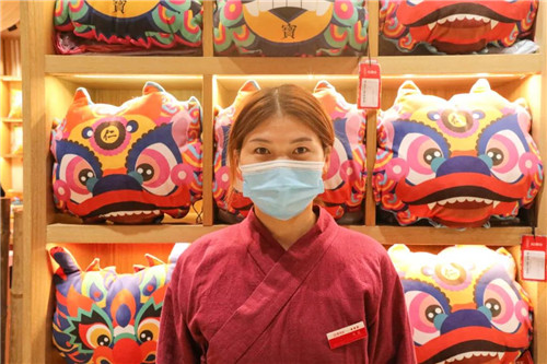 我叫竇艷芳,是芒碭山購物中心的一名導(dǎo)購員。自從豫游紀(jì)公司入駐芒碭山以來,文創(chuàng)產(chǎn)品不斷推陳出新,特別是小朋友和喜歡中國風(fēng)的大人,真是對(duì)每一個(gè)小玩意都特別喜愛。