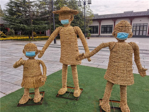 景區(qū)為稻草人帶上了口罩,提醒大家做好個人防護(hù)工作。