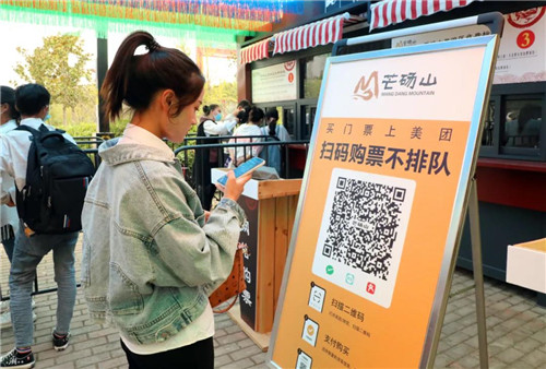 假期期間,芒碭山旅游區(qū)依舊以線上預(yù)約購票為主,在園區(qū)各處設(shè)置有購票二維碼和購票流程示意圖;線下購票窗口設(shè)置有保障購票秩序的圍欄和間距提醒標(biāo)識,幫助游客安全有序的完成購票。