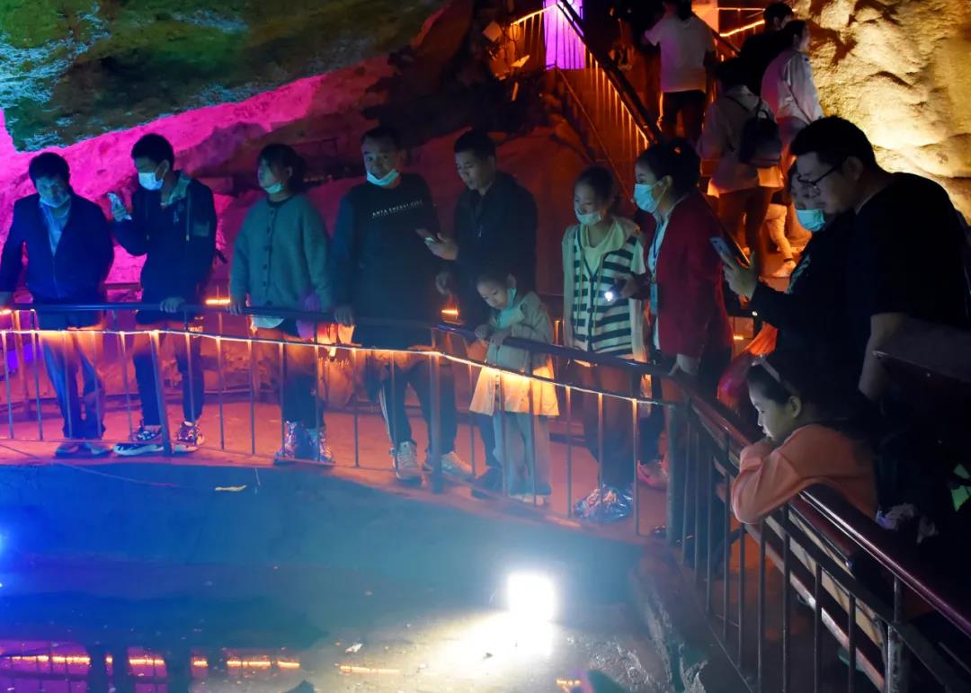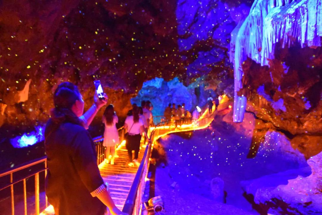 洞內(nèi)燈光絢麗多彩,
