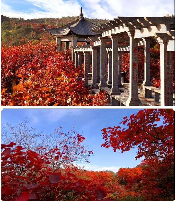 長(zhǎng)壽山是全國(guó)十大紅葉觀賞基地之一,面積大、品種多、觀賞周期長(zhǎng),紅、黃、綠的搭配恰似一幅色彩濃郁的油畫,醉人心魄,行走在長(zhǎng)壽山,仿佛置身于繽紛的夢(mèng)境。