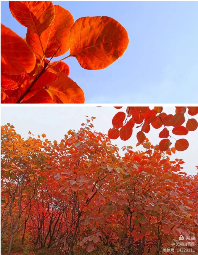長(zhǎng)壽山“紅葉節(jié)”期間,遍布群山溝壑的彩葉漸次變色,萬山紅遍,層林盡染,火紅的黃櫨葉,將以一生中最飽滿的姿態(tài),驚艷整個(gè)寒秋。