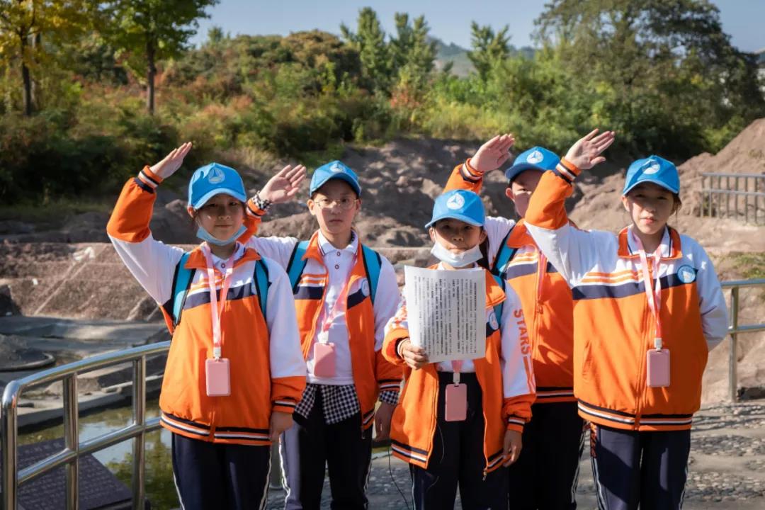 發(fā)布會(huì)上,學(xué)生代表上臺(tái)宣誓,旅游公司與中國(guó)水利水電出版?zhèn)髅郊瘓F(tuán)青少年科普研學(xué)中心負(fù)責(zé)人一同為孟津縣雙語(yǔ)學(xué)校學(xué)生代表授旗。