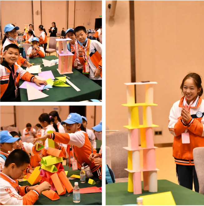 通過(guò)讓學(xué)生自主完成54塊大型拼板來(lái)揭開(kāi)小浪底調(diào)水調(diào)沙的宏大場(chǎng)面,同學(xué)們深刻體會(huì)團(tuán)結(jié)一致和規(guī)范化的制度是共同協(xié)作的前提,從而延伸到對(duì)小浪底建設(shè)者們的敬業(yè)與奉獻(xiàn)精神致以崇高的敬意;“挑戰(zhàn)紙塔”,通過(guò)引導(dǎo)學(xué)生用卡紙搭建多層塔,充分調(diào)動(dòng)學(xué)生的主觀能動(dòng)性,通過(guò)親身體驗(yàn)和感受,讓學(xué)生明白工程建設(shè)與實(shí)際生活是相通的,同時(shí)領(lǐng)悟團(tuán)隊(duì)協(xié)作的方法與技巧。