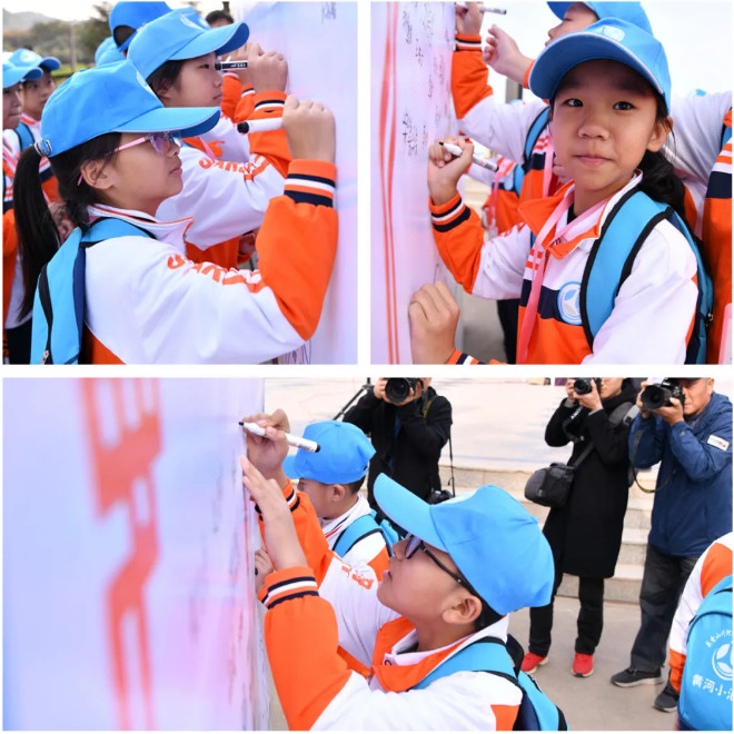 最后,同學(xué)們拿起手中的筆,面對(duì)志愿者簽字墻上“關(guān)愛(ài)山川河流,保護(hù)母親河”、“大國(guó)行動(dòng),沒(méi)你不行,請(qǐng)銘記你的責(zé)任和堅(jiān)持,共同建設(shè)美麗中國(guó)!”的承諾莊嚴(yán)簽字。