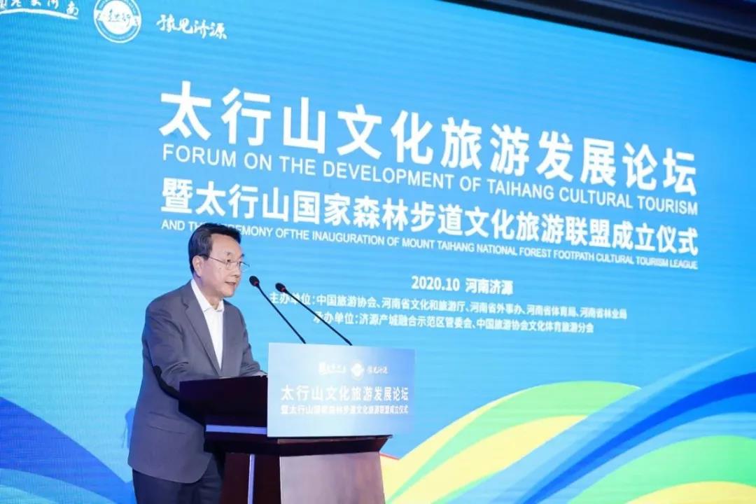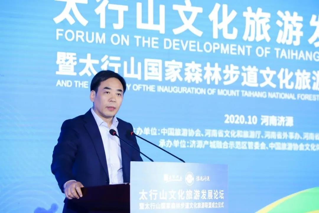 山脈相連,巍巍太行山,貫穿北京、河北、山西、河南。作為2020首屆穿越壯美太行國際徒步大會的重要組成部分,10月24日下午,以聚焦太行山未來旅游發(fā)展為主題,太行山文化旅游發(fā)展論壇暨太行山國家森林步道文化旅游聯(lián)盟成立儀式,在太行山國家森林步道南起點濟源舉行。來自北京、河北、山西、河南三省一市文化和旅游部門負責人以及國內(nèi)外文化、體育、旅游、營銷等相關(guān)領(lǐng)域?qū)<覍W(xué)者,聚集一堂,群策群力,共同探索太行山文化旅游融合發(fā)展路徑,推進“旅游+”,構(gòu)建太行山文化旅游共建共享新格局。