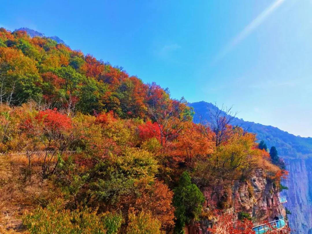 金秋十月,秋染新鄉(xiāng)南太行,紅葉最佳觀賞期,滿山紅遍,層林盡染,到處一派迷人秋色。新鄉(xiāng)南太行天界山景區(qū)也被染成了一個色彩斑斕的世界。