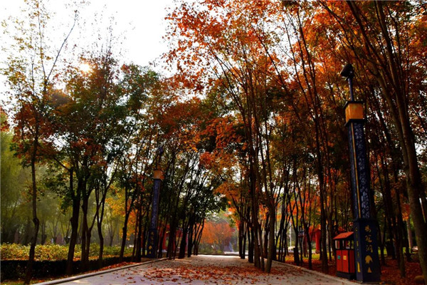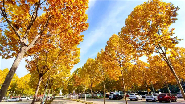 進(jìn)入雞冠洞,停車場一排排法桐颯颯而立,綠的、黃的、或黃綠的樹葉,交相輝映,美不勝收!