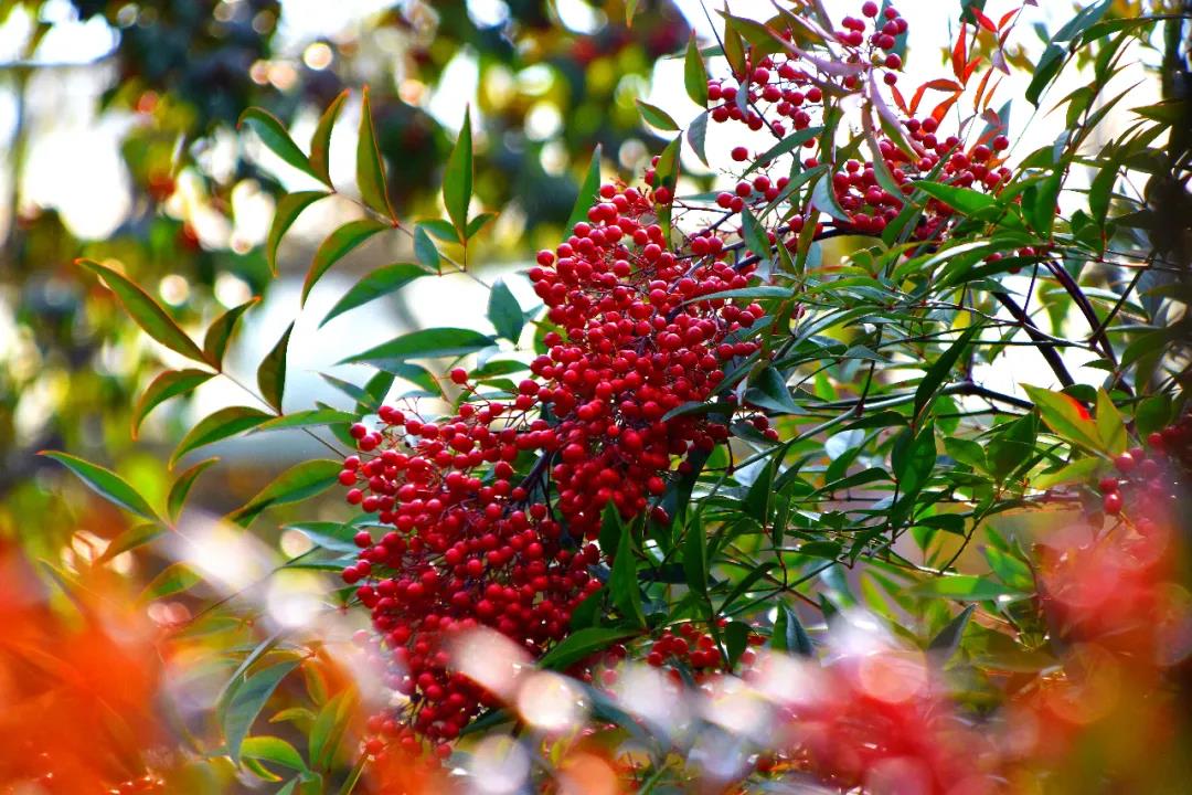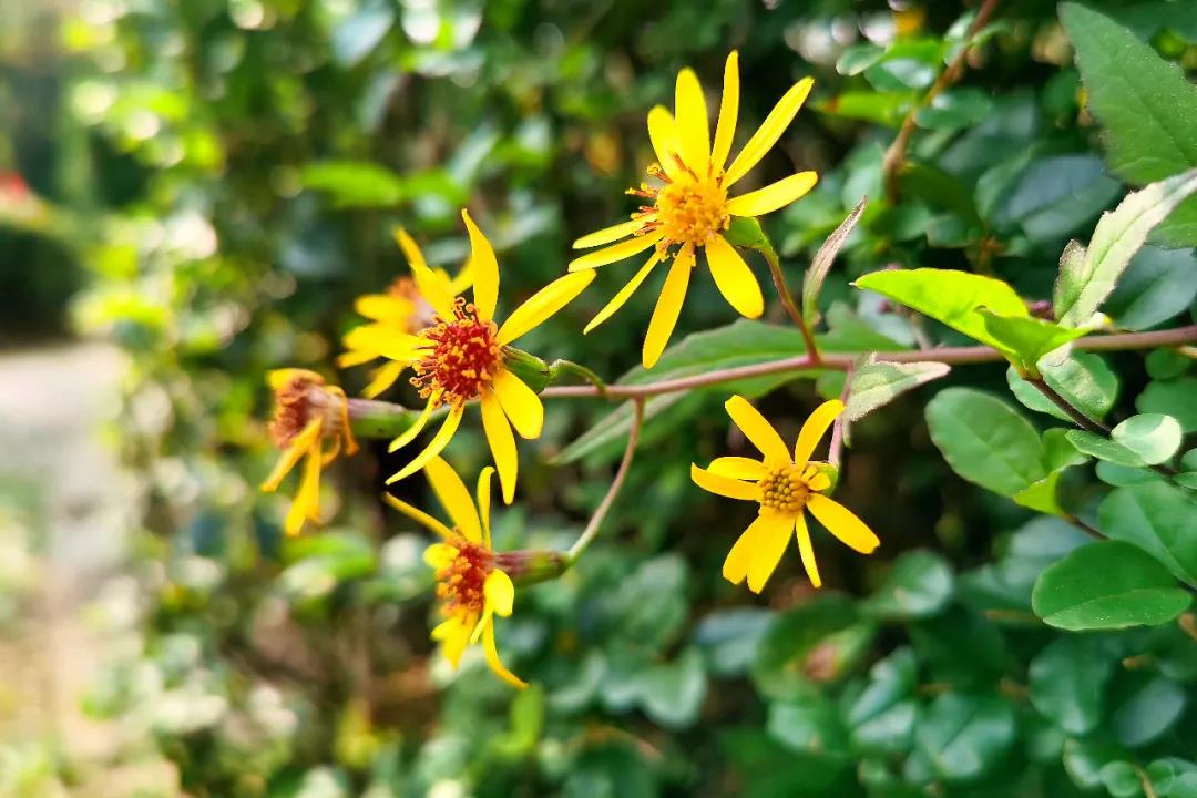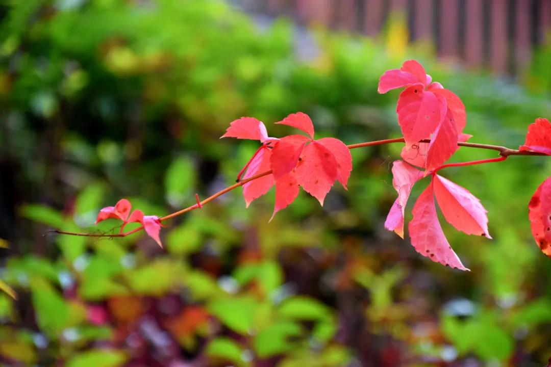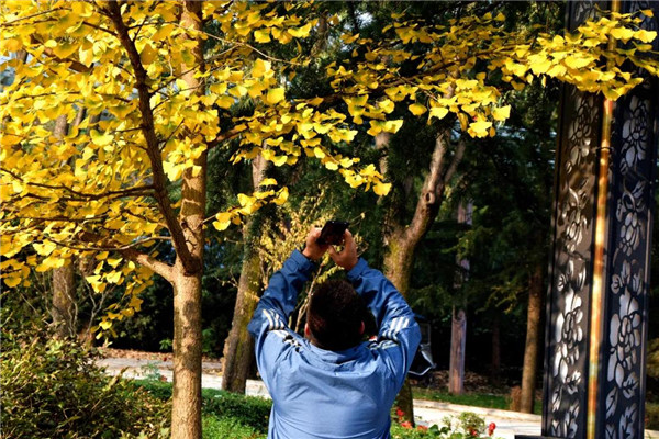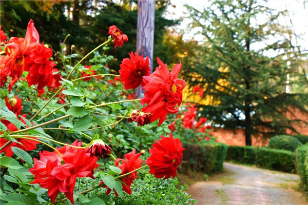 游覽步道兩旁,楓葉紅了,銀杏黃了,大麗花開了,枝頭的柿子惹人垂涎。