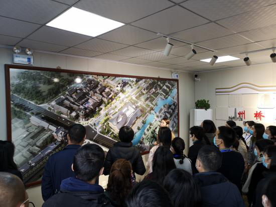 現(xiàn)場教學(xué)的第二站是開封州橋及汴河遺址公眾考古研學(xué)示范基地。開封市的州橋始建于唐代,歷經(jīng)千年滄桑,久負(fù)盛名,是開封城的歷史見證。趙匡胤州橋斬石龍、楊志賣刀等故事廣為流傳,王安石、梅堯臣、范成大皆有州橋詠詩。