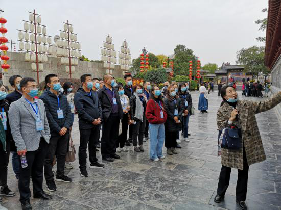 開封博物館以北宋東京城歷史文化陳列、北宋科技發(fā)展成就、開封朱仙鎮(zhèn)木版年畫、館藏明清皇家珍品四大展廳,通過館藏文物陶器、瓷器、銅器、書畫、雕刻、漆器、服飾屏風(fēng)等珍貴的歷史遺存,再現(xiàn)了千年古都的歷史文化風(fēng)貌。學(xué)員們在博物館重點(diǎn)觀摩學(xué)習(xí)了《風(fēng)•雅•宋》宋代文物展。展覽主體仿宋詞結(jié)構(gòu)分為“風(fēng)宋”“雅宋”上下兩闋:上闋“風(fēng)宋”以宋人起居、飲食、梳妝、休閑為切入點(diǎn),展現(xiàn)了宋代因社會經(jīng)濟(jì)高速發(fā)展、人民生活富足而形成的獨(dú)有的市井風(fēng)情;下闋“雅宋”講述了宋代文人四雅、四藝、雅集、雅樂,體現(xiàn)了宋人獨(dú)特的審美風(fēng)格、高雅情趣。通過現(xiàn)場學(xué)習(xí),廣西壯族自治區(qū)文化和旅游廳宣傳推廣處副處長劉銓感慨地說:今天真是親身體驗(yàn)了閑適悠游、瀟灑愜意的宋人風(fēng)雅生活,感受了大宋文明的獨(dú)特魅力,中原文化和黃河文化真是中華文化的精粹!