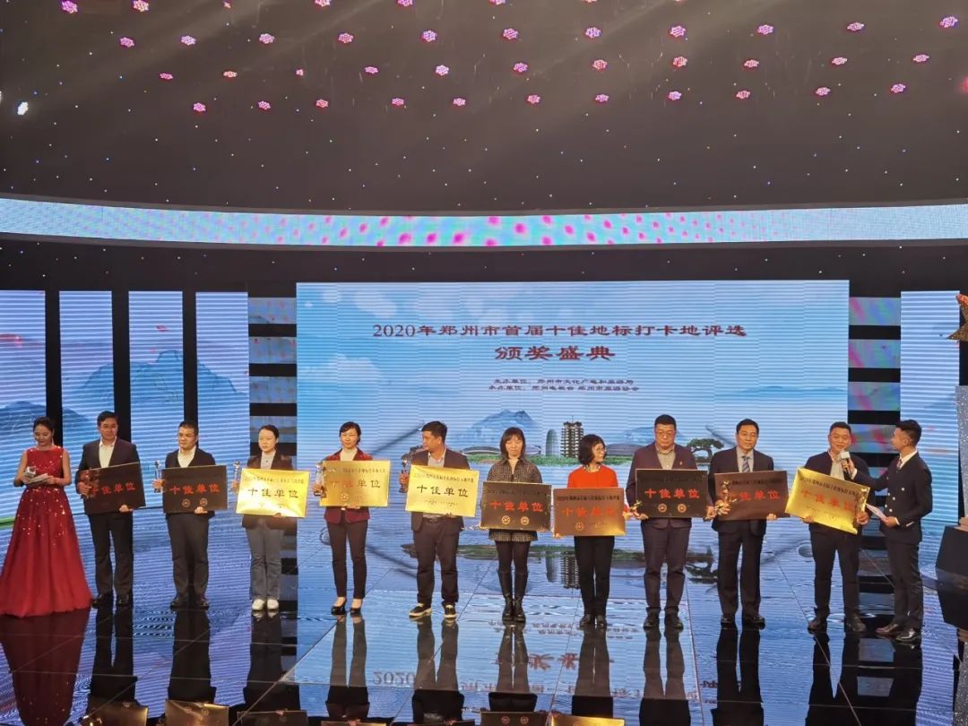 頒獎典禮上,鄭州市文化廣電和旅游局、鄭州電視臺、鄭州市旅游協(xié)會相關(guān)負(fù)責(zé)人為鄭州市鳥蟲篆藝術(shù)博物館、鄭州市森林公園、隴海馬路街道北三街、國香茶城、龍湖里、鄭州商代都城遺址、好想你金鷺鴕鳥游樂園、鄭州博物館、建業(yè)中原文化小鎮(zhèn)之櫻桃溝足球小鎮(zhèn)、千稼集景區(qū)十家入選單位頒發(fā)獎杯和榮譽(yù)證書。