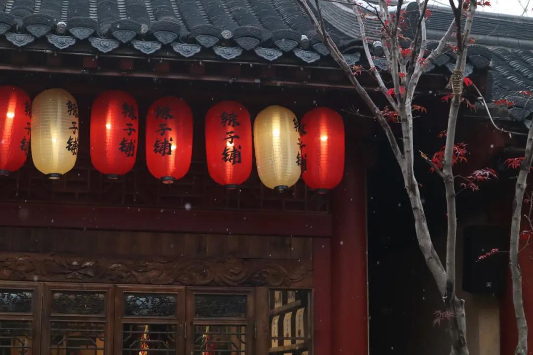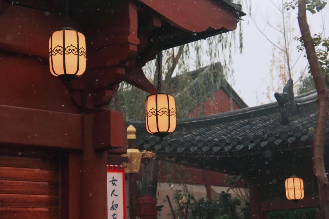 飛雪中的碧瓦飛甍、雕梁畫棟