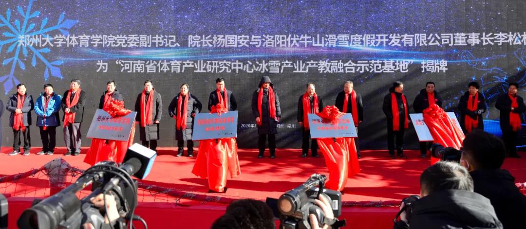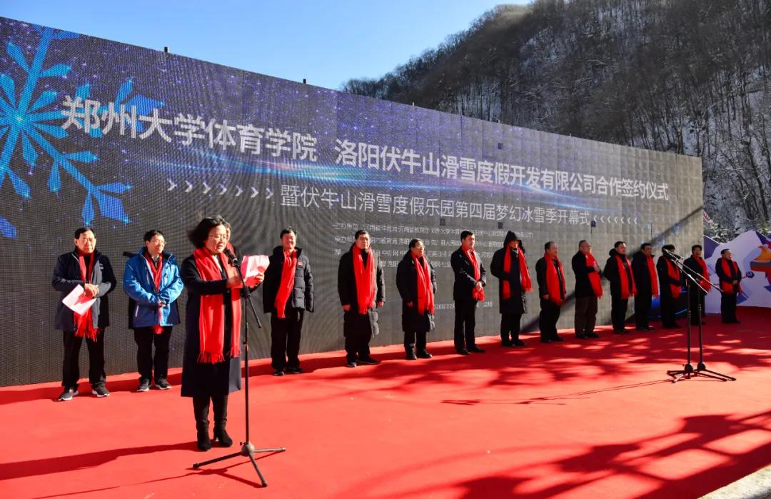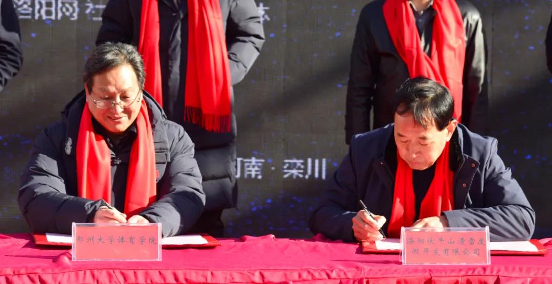 開(kāi)幕式上,鄭州大學(xué)體育學(xué)院與洛陽(yáng)伏牛山滑雪度假開(kāi)發(fā)有限公司正式簽署合作協(xié)議并進(jìn)行授牌、揭牌儀式。