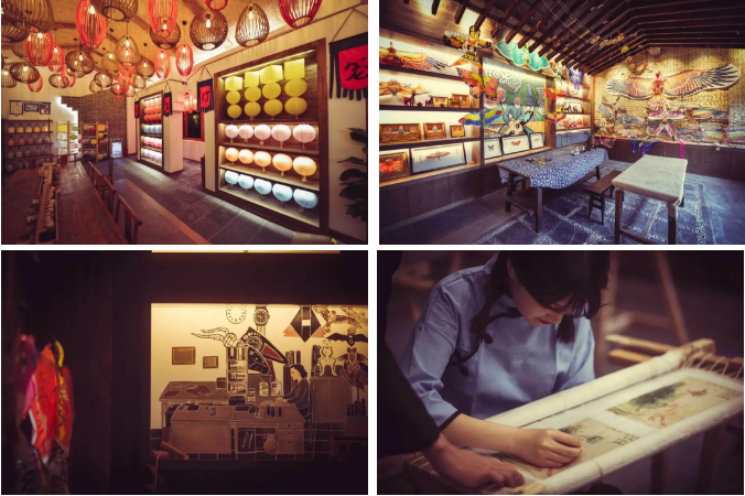 另一條街區(qū)——太極街區(qū)以發(fā)源于河南焦作溫縣陳家溝的太極文化與電影《太極》為創(chuàng)作原型,復(fù)原了電影里的陳家溝村落、小鎮(zhèn)集市、京城等重要場景,讓江湖不再是夢,讓劇情觸手可及。同時,太極街還被打造成了河南本土文化的體驗地,染坊、編織鋪、燈籠鋪、紙鳶鋪、中原繡坊…河南古樸的手工藝術(shù)與非遺文化在小鎮(zhèn)煥發(fā)新生。