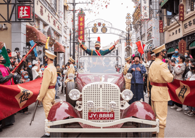 電影小鎮(zhèn)已開街的兩條街區(qū)之一——電影大道街區(qū)展現(xiàn)了上世紀二三十年代鄭州開放商埠及火車通行以來百業(yè)興隆的歷史面貌,不僅還原了許多當年的老建筑、老字號,甚至連老招牌都重新復(fù)刻在這里:雅芳照相館、瑞豐祥綢緞莊、上世紀的尖貨聚集地華信昌百貨店、1933南京人王履之創(chuàng)辦的鄭州第一家化妝品專營店“華華工業(yè)社”……電影小鎮(zhèn)在規(guī)劃設(shè)計時,查找了大量的歷史資料和老照片,試圖盡全力復(fù)原實景,給游客展示一個最真實的老鄭州。