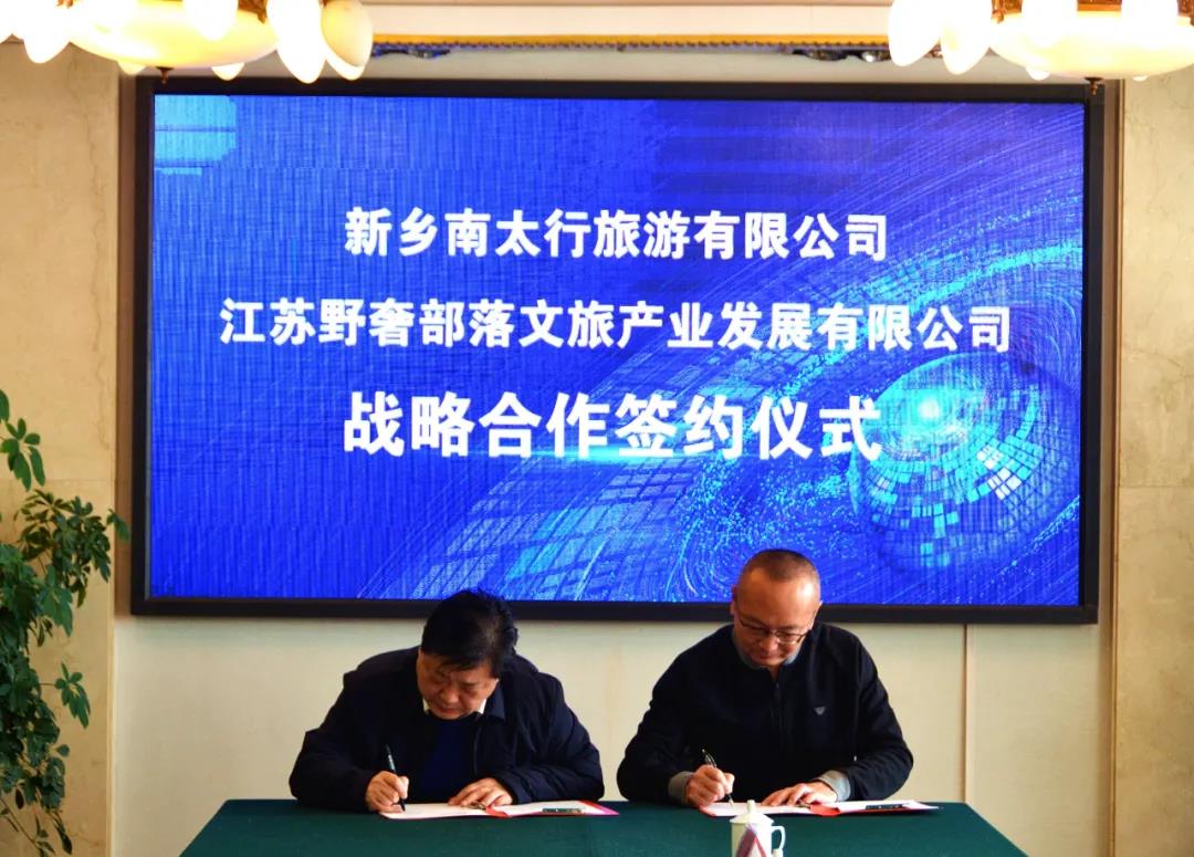 12月24日,新鄉(xiāng)南太行旅游有限公司和江蘇野奢部落文旅產業(yè)發(fā)展有限公司戰(zhàn)略合作簽約儀式在輝縣順利舉行。