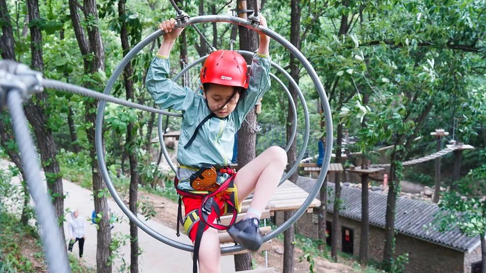 嵖岈山叢林飛躍,一項(xiàng)時(shí)尚的樹(shù)頂穿越項(xiàng)目,共設(shè)親子、成人、兒童三條線路,參與者通過(guò)爬、滑、跨、跳、飛等動(dòng)作,越過(guò)所有障礙,在空中挑戰(zhàn)自己的膽識(shí)和體魄!
