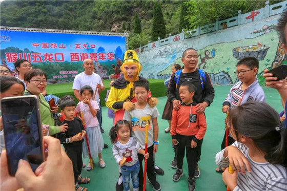 中國猴山五龍口景區(qū)的孫大圣和Breaking男孩八戒在央視《黃金100秒》一戰(zhàn)成名。今年,中國猴山五龍口景區(qū)把《黃金100秒》的舞臺搬進了景區(qū),搬到了全市人民身邊。