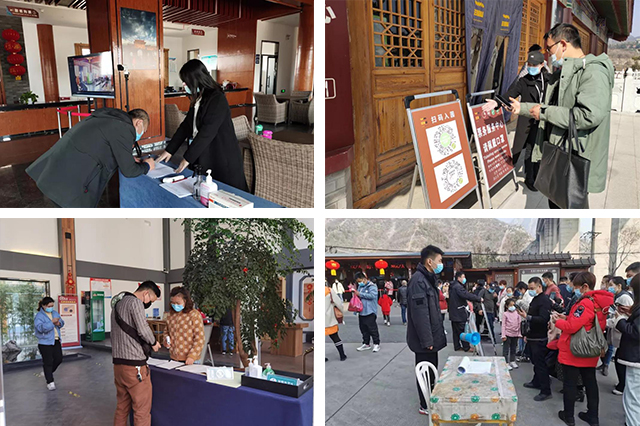 但與此同時,文旅集團(tuán)各景區(qū)強(qiáng)化防控措施,有序限量開放游覽,按照入園必檢要求,實(shí)名登記、健康掃碼、體溫測量等必要防控措施一個都不能少,不間斷引導(dǎo)游客規(guī)范佩戴口罩,讓廣大游客們“健康游”、“安全游”、“放心游”。