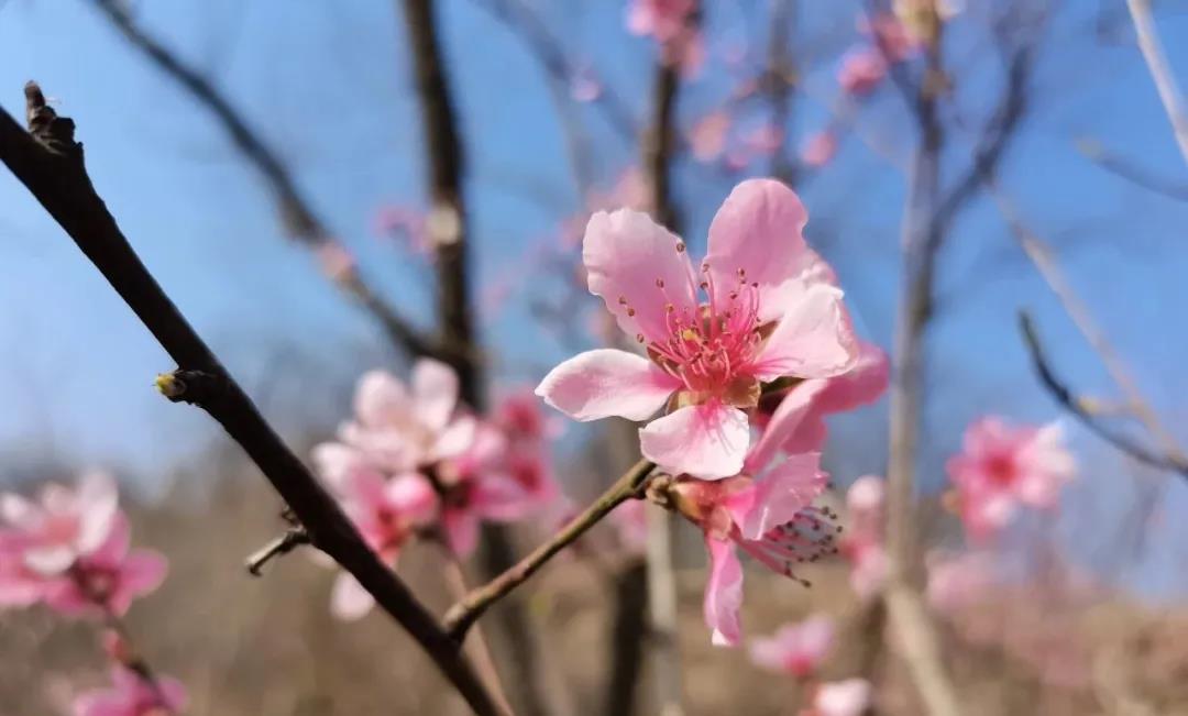 這時候,臘梅還未完全收起她那傲雪的氣質(zhì),迎春花已迎著春日露出笑臉,緊接著二月藍(lán)、紫羅蘭、山桃花、梨花競相開放,趕趟兒似的。正如朱自清筆下的春色一樣,紅的像火、紅的像火,粉的像霞,白的像雪.....