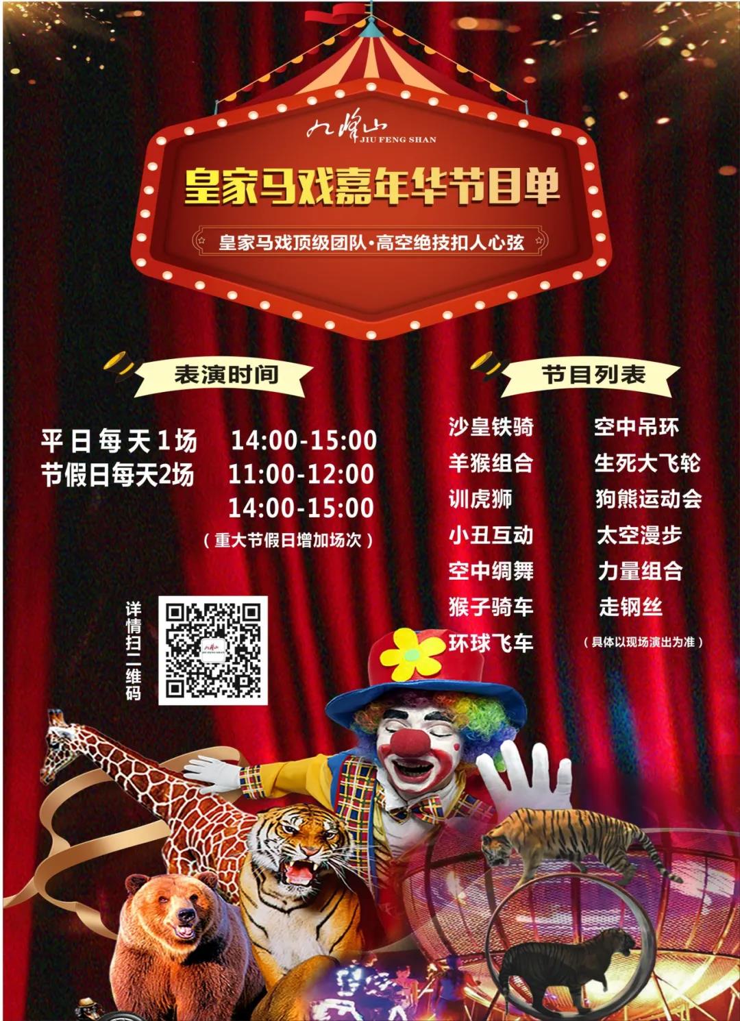 九峰山皇家馬戲嘉年華,引進(jìn)了頂級(jí)豪華的表演團(tuán)隊(duì),帶來(lái)驚心動(dòng)魄、震撼刺激的盛宴。