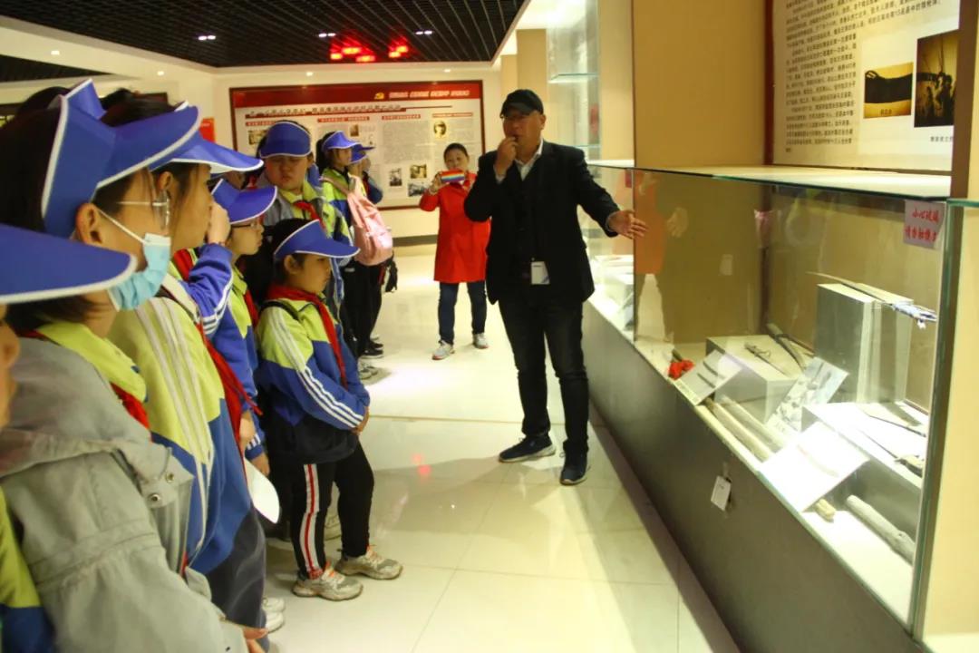 紅色抗戰(zhàn)實物展覽館內(nèi),同學(xué)們排著整齊有序的隊伍,認(rèn)真地聽著研學(xué)導(dǎo)師講抗戰(zhàn)時期的歷史,聆聽抗戰(zhàn)時期雙槍李向陽原型郭興等抗戰(zhàn)老兵的英雄故事。