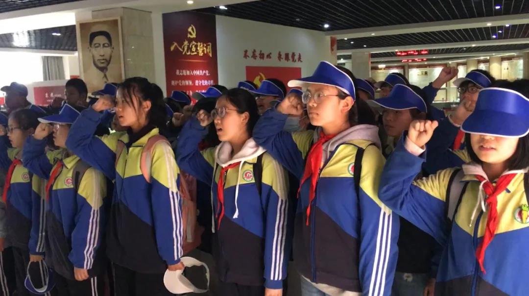 同學(xué)們跟著導(dǎo)師宣誓:愛祖國,向英勇的先烈學(xué)習(xí);愛家鄉(xiāng),為河南發(fā)展努力!立志做一個有理想、有道德、有文化、有紀(jì)律的人!