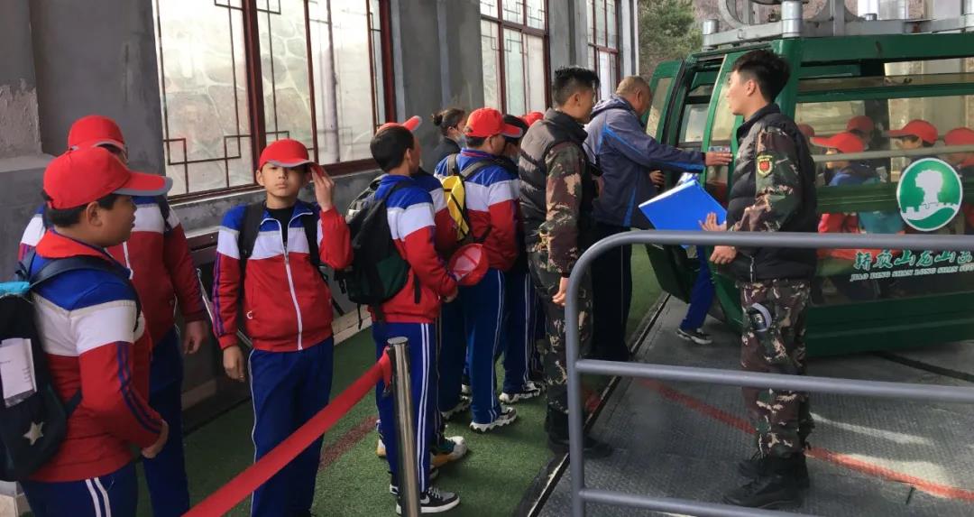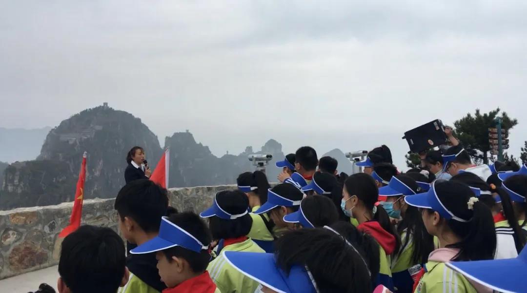 用餐休息過后,同學(xué)們有序乘坐索道到達基地龍山山頂。聽研學(xué)導(dǎo)師實地講解太行山的歷史與地質(zhì)文化。