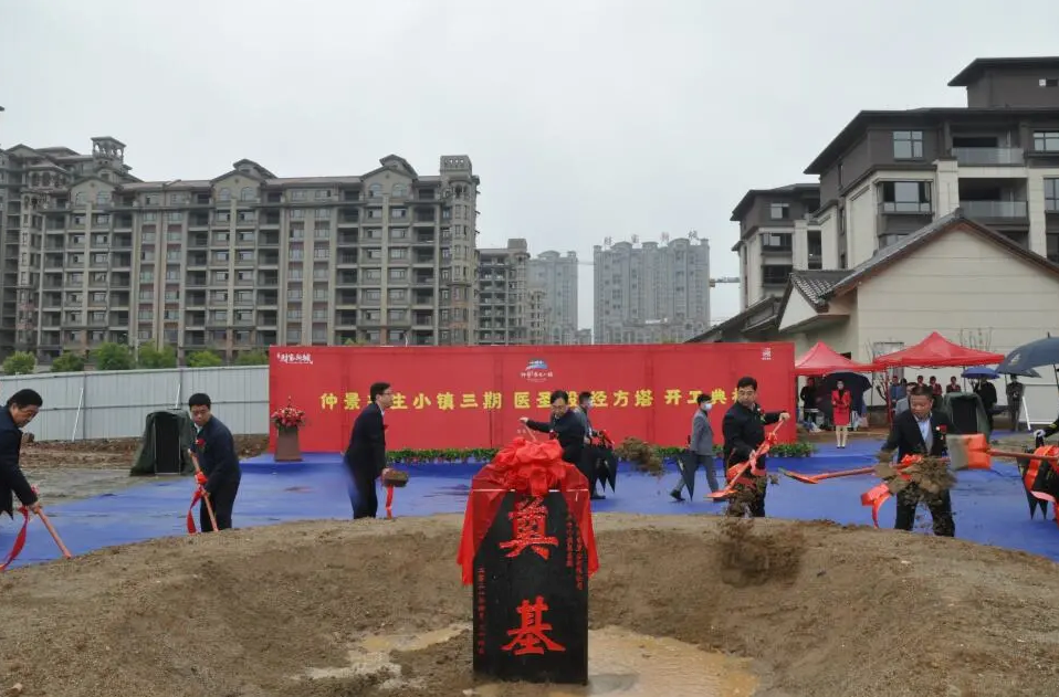 隨后,西峽縣委常委、縣長馬俊同志宣布仲景養(yǎng)生小鎮(zhèn)三期醫(yī)圣殿、經(jīng)方塔正式開工奠基!在一片禮炮齊鳴、彩帶飛舞的喜慶場(chǎng)景下,嘉賓與領(lǐng)導(dǎo)們共同為仲景養(yǎng)生小鎮(zhèn)三期項(xiàng)目動(dòng)工培土奠基。
