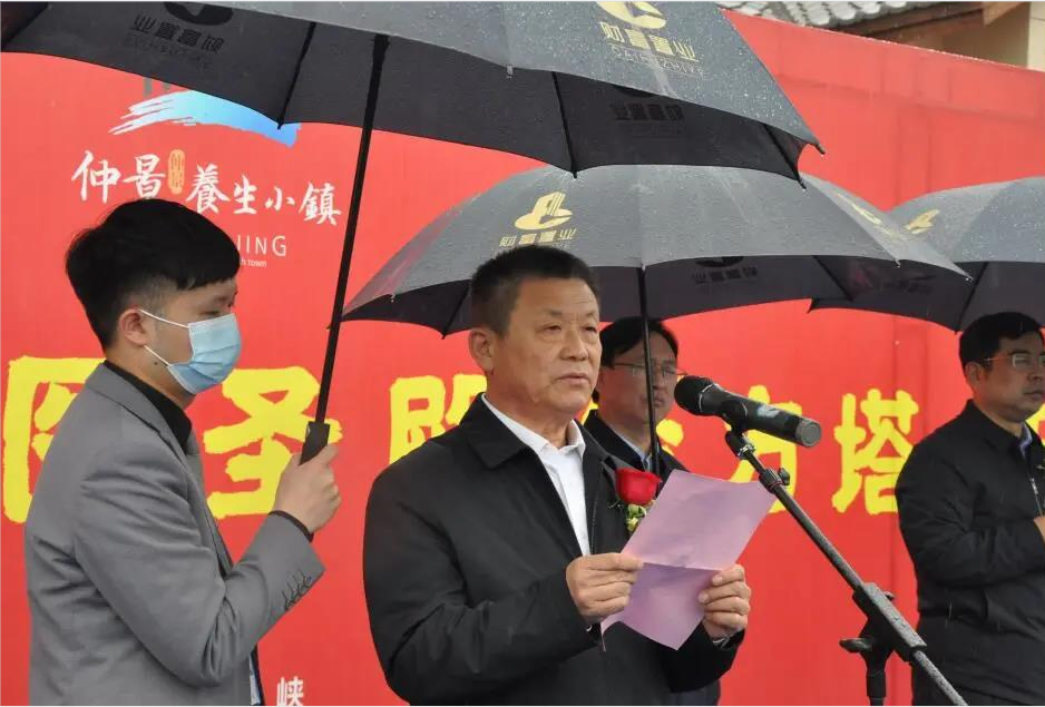 西峽縣委副書記、縣長馬俊宣布了“仲景養(yǎng)生小鎮(zhèn)三期醫(yī)圣殿、經(jīng)方塔建設(shè)項(xiàng)目開工”。