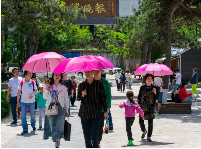 “五一”小長(zhǎng)假的第一天,天氣晴朗,非常適合出游,一大早景區(qū)的生態(tài)停車場(chǎng)就人氣爆棚, 游客逐漸增多。