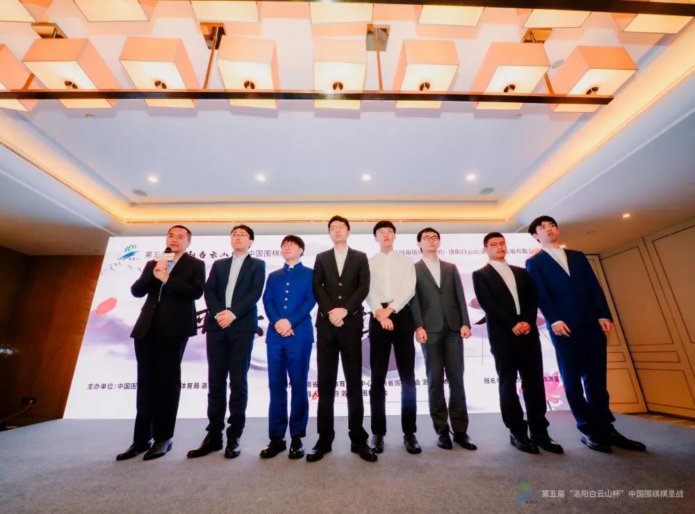 隨后,八位參賽棋手也登臺發(fā)表了戰(zhàn)前感言,大家不約而同都表達了同一個參賽目標(biāo):希望后邊能去白云山。(p.s:本屆棋圣戰(zhàn)決賽將于7月份在洛陽白云山舉行,大家期待獲得挑戰(zhàn)權(quán),能夠去風(fēng)光秀美的白云山下棋。)