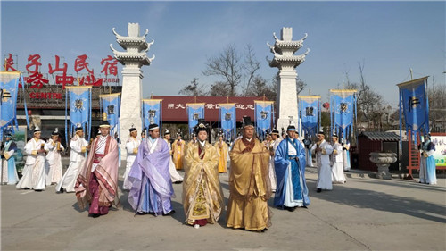 此次采風(fēng)踩線活動(dòng)由河南省旅游文化研究會(huì)主辦,永城夫子山景區(qū)承辦。26日下午,采風(fēng)踩線團(tuán)成員抵達(dá)夫子山景區(qū)。缶樂轟鳴中,“孔子”和“夫人”攜眾弟子組成的龐大陣容為客人們上演了一場(chǎng)隆重的“孔子迎賓禮”。接著,大家來到夫子山文化廣場(chǎng)的廊亭處,欣賞舞臺(tái)上美妙驚艷的高空雜技。