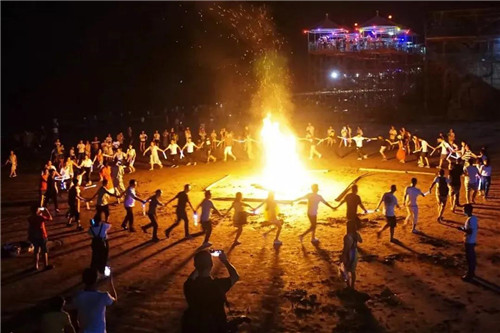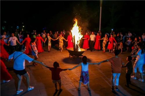 夜幕降臨,大家圍著熊熊燃燒的篝火,載歌載舞,熱情奔放,夜空在烈火的掩映下,變得格外的璀璨明亮,就像人們心中美好的希望一樣,閃爍著動(dòng)人的光芒。
