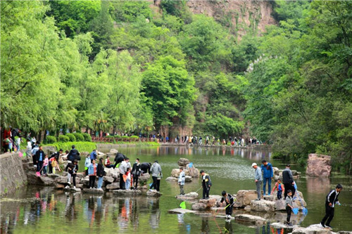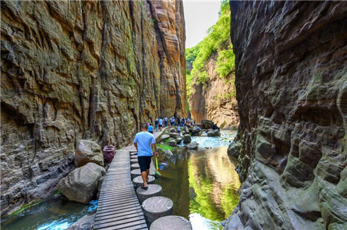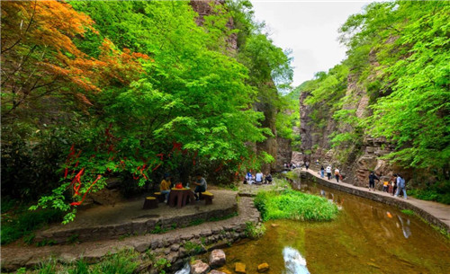 龍?zhí)洞髰{谷谷內(nèi)關(guān)峽相望、潭瀑聯(lián)珠、壁立萬(wàn)仞、峽秀谷幽。全長(zhǎng)14公里,可徒步游覽。穿越裂谷奇峽,遇見(jiàn)歡暢溪流,探尋甕谷石龕,對(duì)話神秘傳說(shuō)。