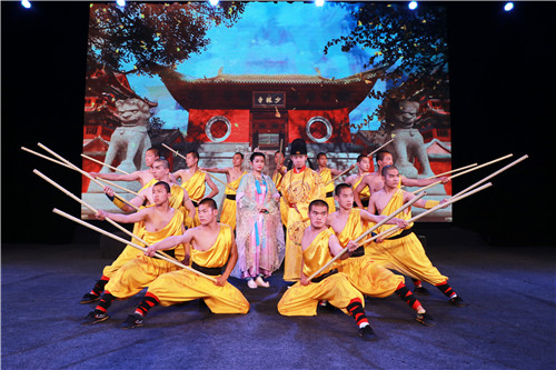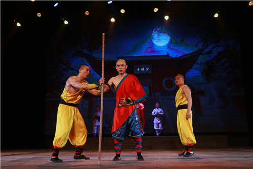 “晚上八時(shí)許,胸懷天下的秦王李世民與女扮男裝的大唐公主帶著護(hù)衛(wèi)一龍悄悄潛入大唐死敵鄭王王世充的大本營洛陽抵近觀察……王仁則(王世充侄子)帶領(lǐng)一干武林高手突然掩襲而至……暮鼓晨鐘中出現(xiàn)了一群少林小和尚……”對(duì),你沒看錯(cuò),這里演繹的正是《十三棍僧救唐王》的劇情,事關(guān)少林,事關(guān)功夫,事關(guān)角抵,事關(guān)男人。在禪武大酒店,在止戈劇場(chǎng)。