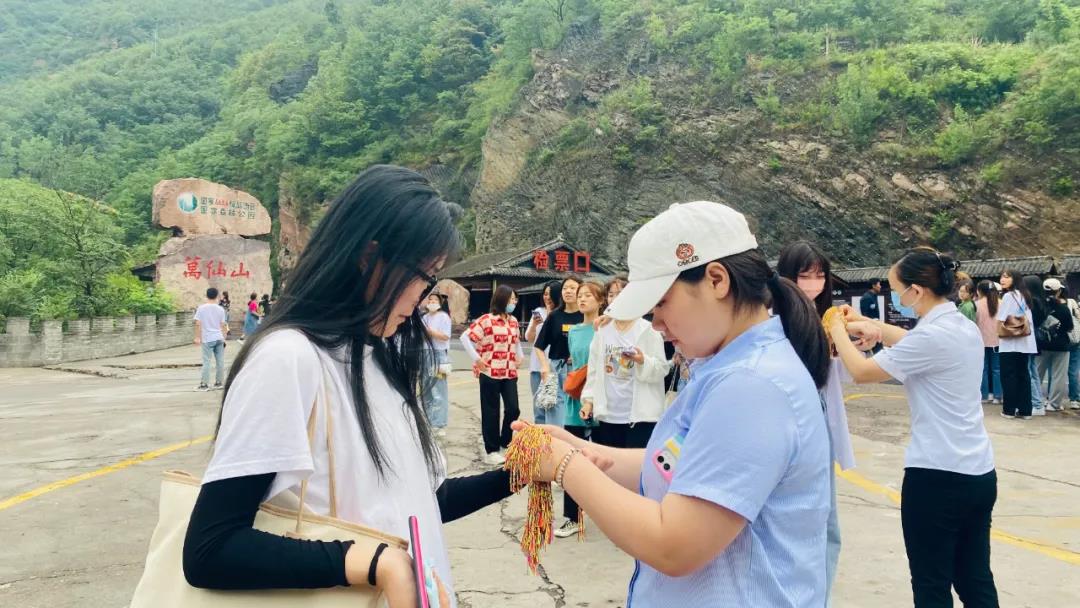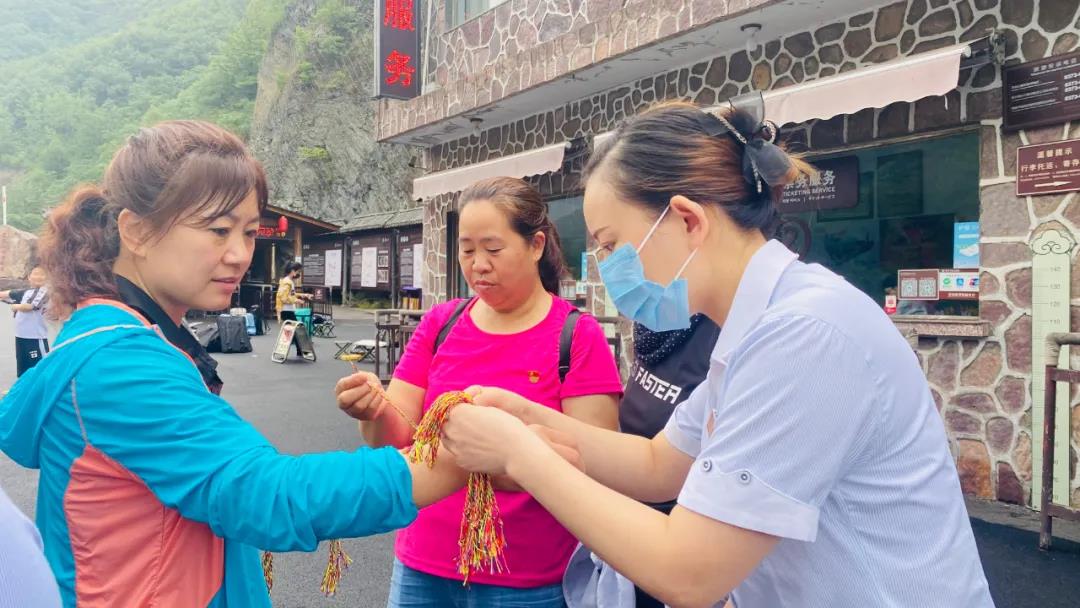 系五彩繩祈平安--五彩繩代表了五行,寓意祈福納吉,景區(qū)員工給游客們系五彩繩,不僅增添了節(jié)日的儀式感,更是一種美好情感的表達和傳遞。